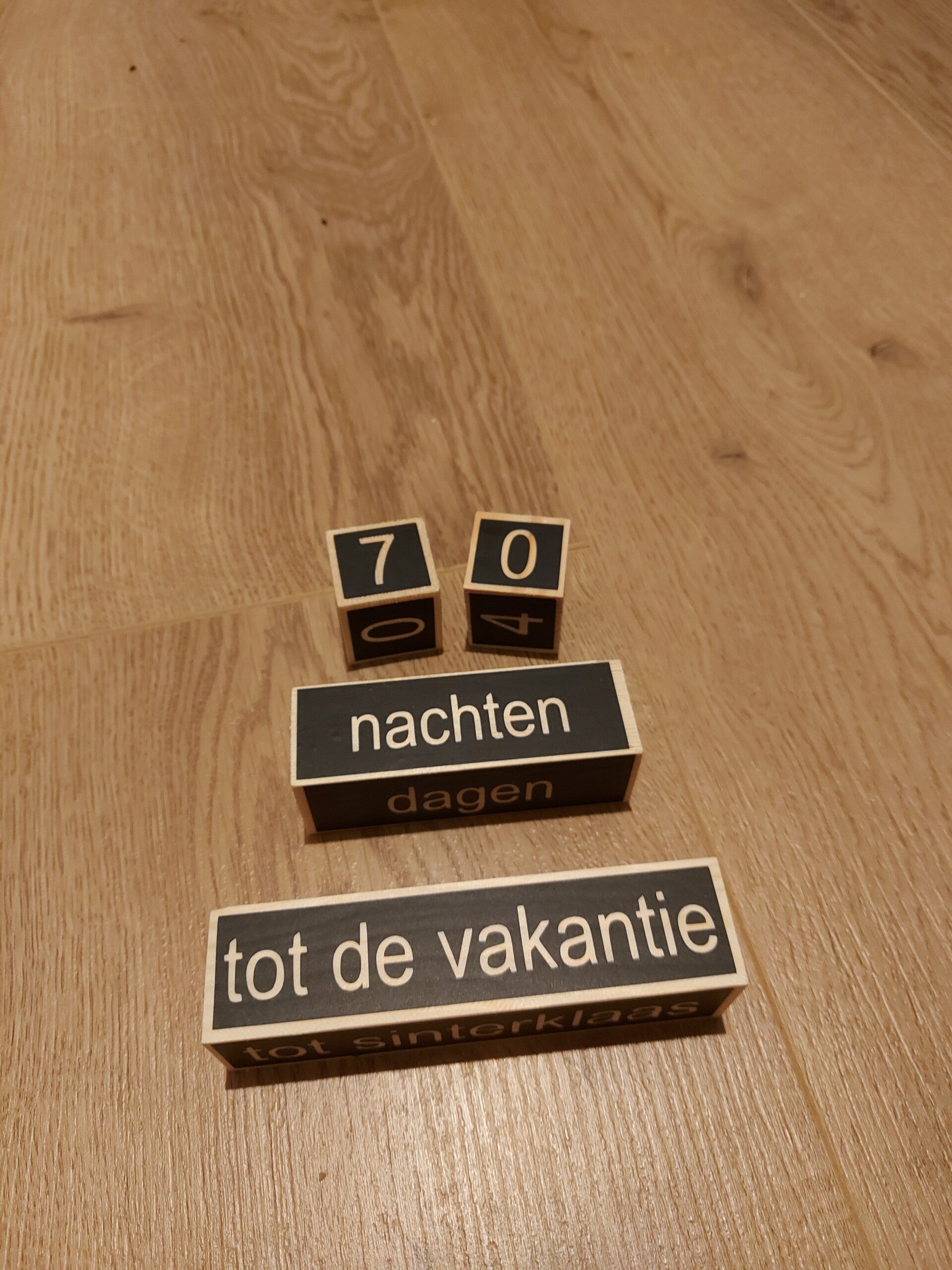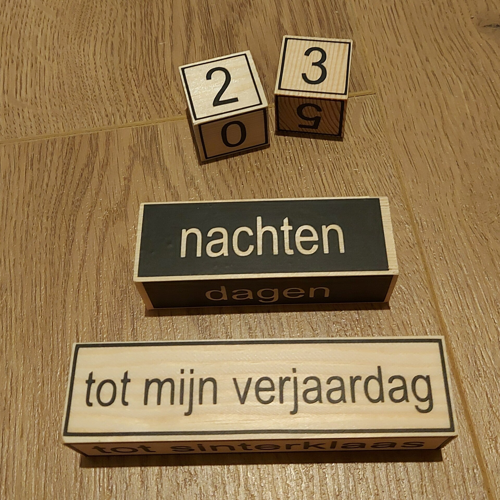 Mocht je een andere tekst op de blokken willen om naar af te tellen, dan is dat uiteraard ook mogelijk.